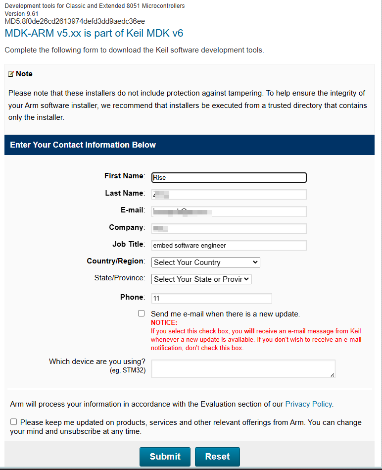 这里需要填写相关信息,不必是真实信息然后点击submit即可